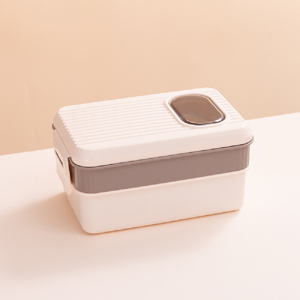 The thoughtful double-layer structure is a game-changer for meal organization: it's spacious enough to hold a hearty, balanced lunch-think a portion of fluffy rice, a serving of grilled chicken or tofu, and a side of crisp veggies-without letting flavors mix. No more soggy greens or messy sauce spills between layers! The lid features a crystal-clear transparent window, too, so you can quickly check what's inside without prying it open or rummaging through your bag-perfect for those busy mornings when you need to grab and go.