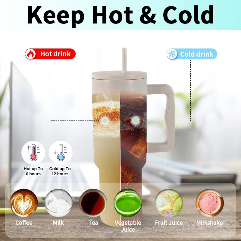 | Title Name: | Custom 40oz Travel Mug with Handle and Straw Lid Insulated Cup Reusable Stainless Steel |
